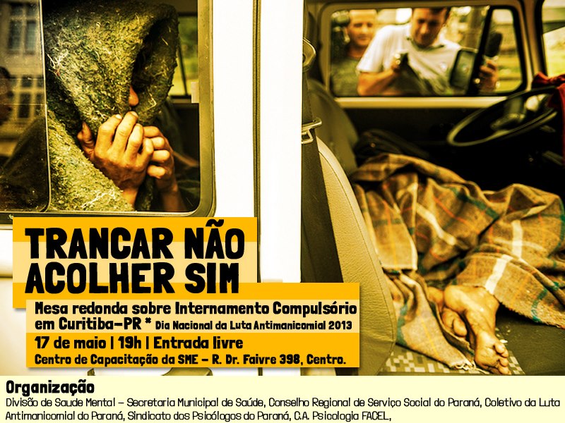 Com o tema “Trancar não, Acolher sim”, duas ações pela Luta Antimanicomial 2013 acontecem no dia 17 de maio, em Curitiba.